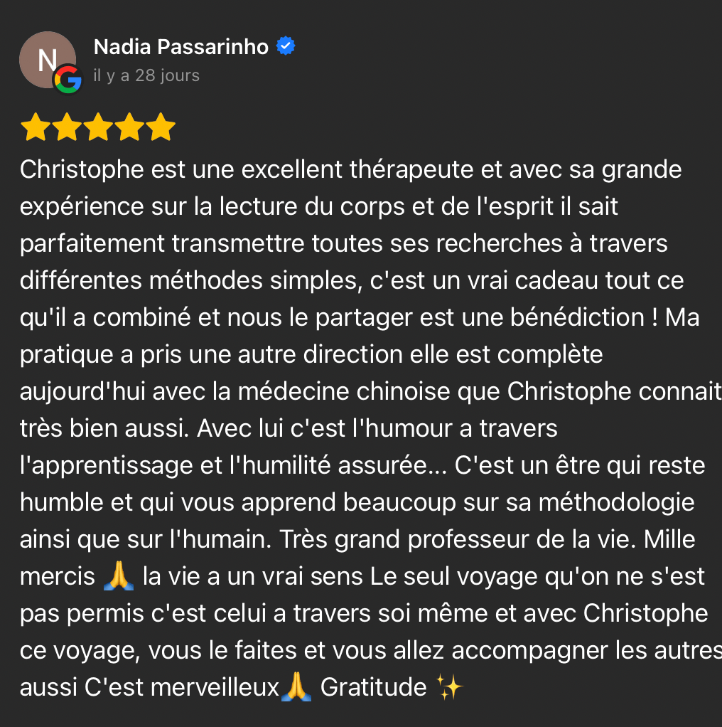 Depuis, j'ai exploré les disciplines qui relient corps et esprit : praticien en médecine traditionnelle chinoise, formé par Josée Chiappe, Gérard Athias et Angela Hoffmann. Aujourd'hui, je partage 25 ans de recherches et d'expériences pour aider les thérapeutes à enrichir leur pratique avec la Bio-logique des émotions.