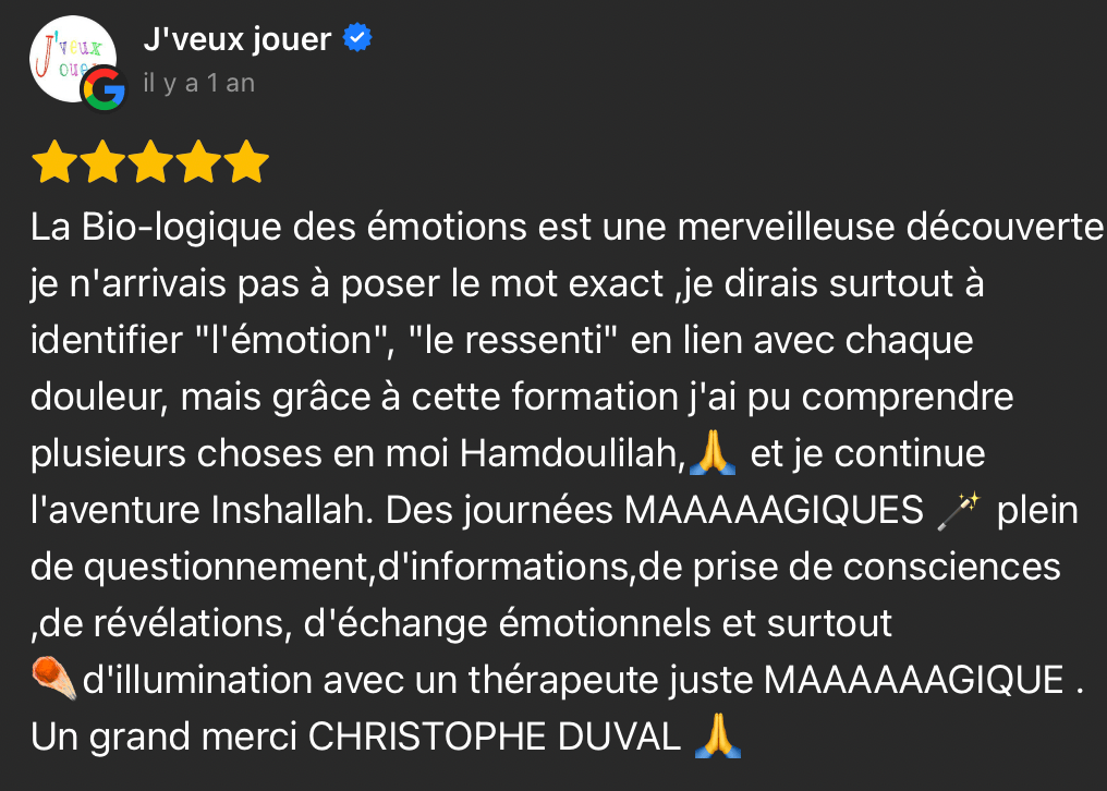 Découvre des techniques simples et puissantes pour intégrer la Bio-logique des émotions dans ta pratique. Transforme tes consultations grâce à des méthodes efficaces, basées sur des décennies d'expérience.